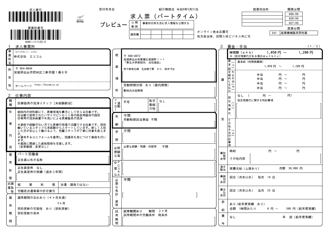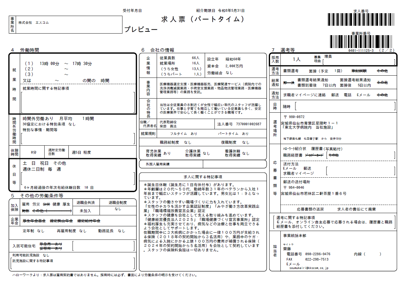 | 詳細 | 病院内の材料部にて、医療現場を裏方として支える仕事です。 ◎治療で使用されたハサミやピンセット等の再使用器材の回収 ◎専用の洗浄装置や手洗いによる医療器具の洗浄 *資格や経験がない方でも医療の現場で活躍できる仕事です。現在働いているスタッフも未経験からスタートしています。入社後は先輩スタッフが丁寧に仕事を教えます *年齢層は20代~50代、勤続年数31年のベテランから入社1年目まで幅広いスタッフが活躍しています。男女比は1:9となっています。 *福利厚生を充実させており、病気などの治療と仕事を両立できるよう会社としてサポートします。在職期間中に3大疾病にかかった場合に一律100万円が支給される保険(2018年契約開始から3名活用)や、業務中のケガ・病気による入院にかかる上限100万円の費用が補償される保険(2024年の契約開始から5名活用)を会社として契約しています。スタッフの保険料負担はありません。 *スタッフの働きやすい職場づくりに力を入れています。「女性のチカラを活かす企業認証制度」「みやぎ働き方改革実践企業」「職場環境改善宣言企業」認証 *スタッフの健康を会社として支える取り組みを進めています。「健康経営優良法人2025」「職場健康づくり宣言事業所」認定 *社会保険完備、年次有給休暇・誕生日休暇あり |