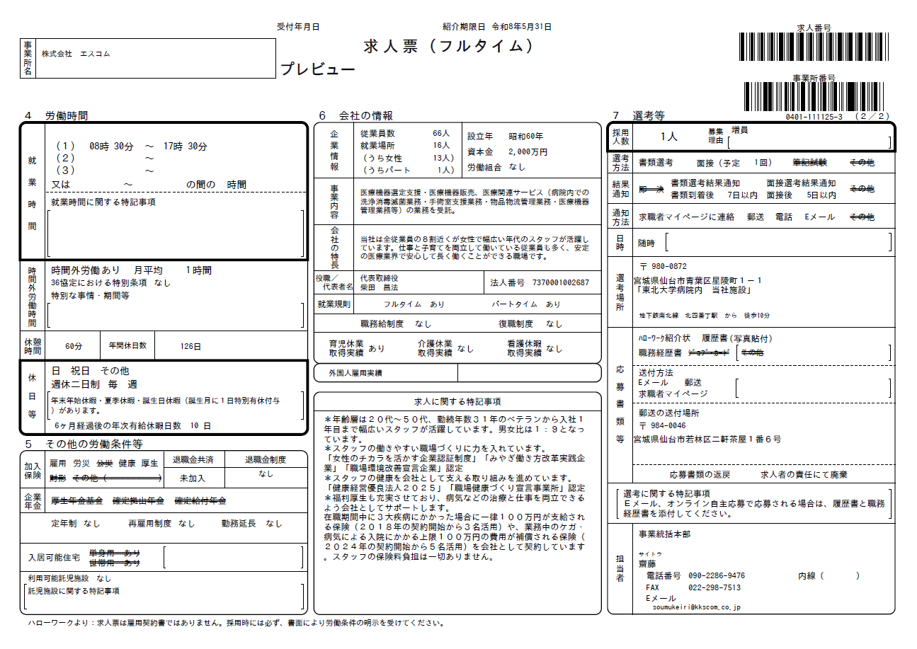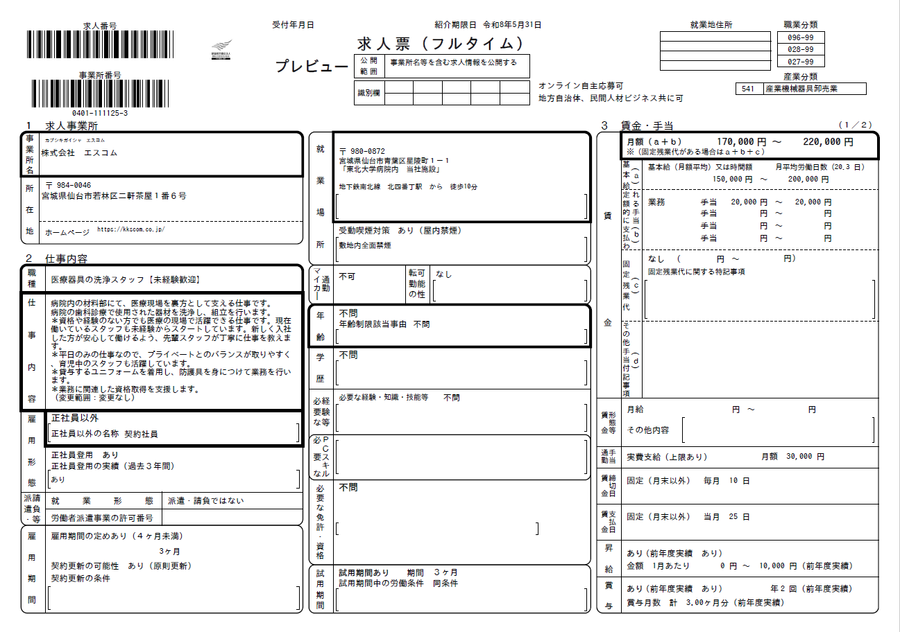 | 詳細 | 病院内の材料部にて、医療現場を裏方として支える仕事です。 病院の歯科診療で使用された器材を洗浄し、組立を行います。 *資格や経験がない方でも医療の現場で活躍できる仕事です。現在働いているスタッフも未経験からスタートしています。入社後は先輩スタッフが丁寧に仕事を教えます。 *平日のみの仕事なので、プライベートとのバランスが取りやすく、育児中のスタッフも活躍しています。 *年齢層は20代~50代、勤続年数31年のベテランから入社1年目まで幅広いスタッフが活躍しています。男女比は1:9となっています。 *福利厚生を充実させており、病気などの治療と仕事を両立できるよう会社としてサポートします。在職期間中に3大疾病にかかった場合に一律100万円が支給される保険(2018年契約開始から3名活用)や、業務中のケガ・病気による入院にかかる上限100万円の費用が補償される保険(2024年の契約開始から5名活用)を会社として契約しています。スタッフの保険料負担はありません。 *スタッフの働きやすい職場づくりに力を入れています。「女性のチカラを活かす企業認証制度」「みやぎ働き方改革実践企業」「職場環境改善宣言企業」認証 *スタッフの健康を会社として支える取り組みを進めています。「健康経営優良法人2025」「職場健康づくり宣言事業所」認定 *社会保険完備、年次有給休暇・夏季休暇・年末年始休暇・誕生日休暇あり |